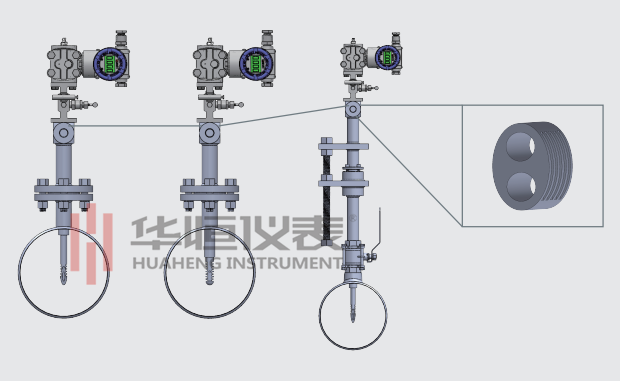 3、有兩種結構形式,可分別測量干凈流體和含塵流體。