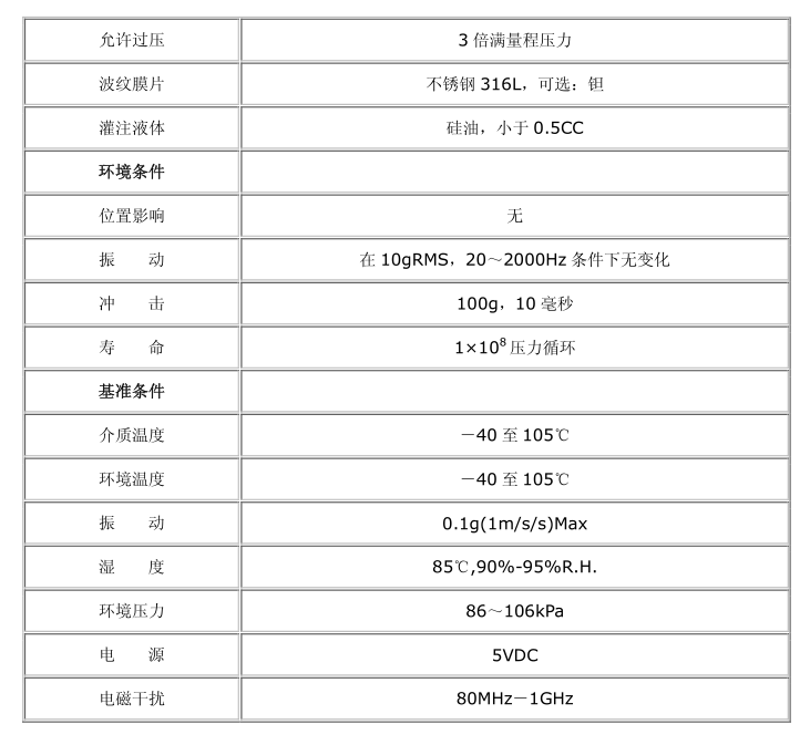 國產(chǎn)壓力變送器是將充油擴散硅壓力傳感器芯體,通過激光焊接方式,裝入特定螺紋的壓力接口中組成。所有產(chǎn)品經(jīng)嚴格測試和篩選,利用MAX1452專用芯片進行溫度補償和非線性校正,典型精度為0.25%,最高精度優(yōu)于0.1%,并保證在-25到80度工作溫區(qū)(最大可在-40到105度),全溫區(qū)測量精度在1%以內(nèi),5V供電,輸出0.5-2.5V電壓信號,適用于各種不同壓力測量產(chǎn)品的組裝和生產(chǎn)。